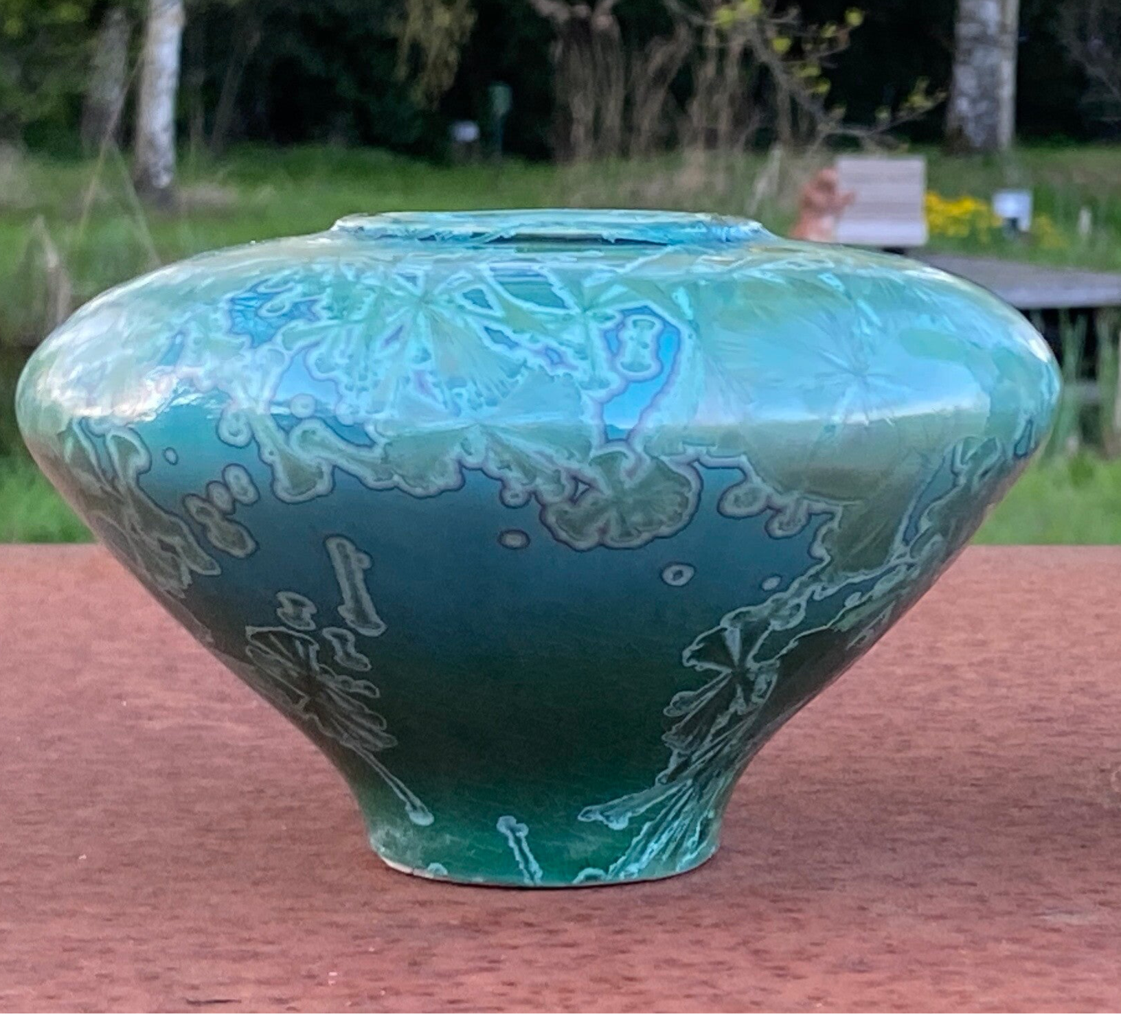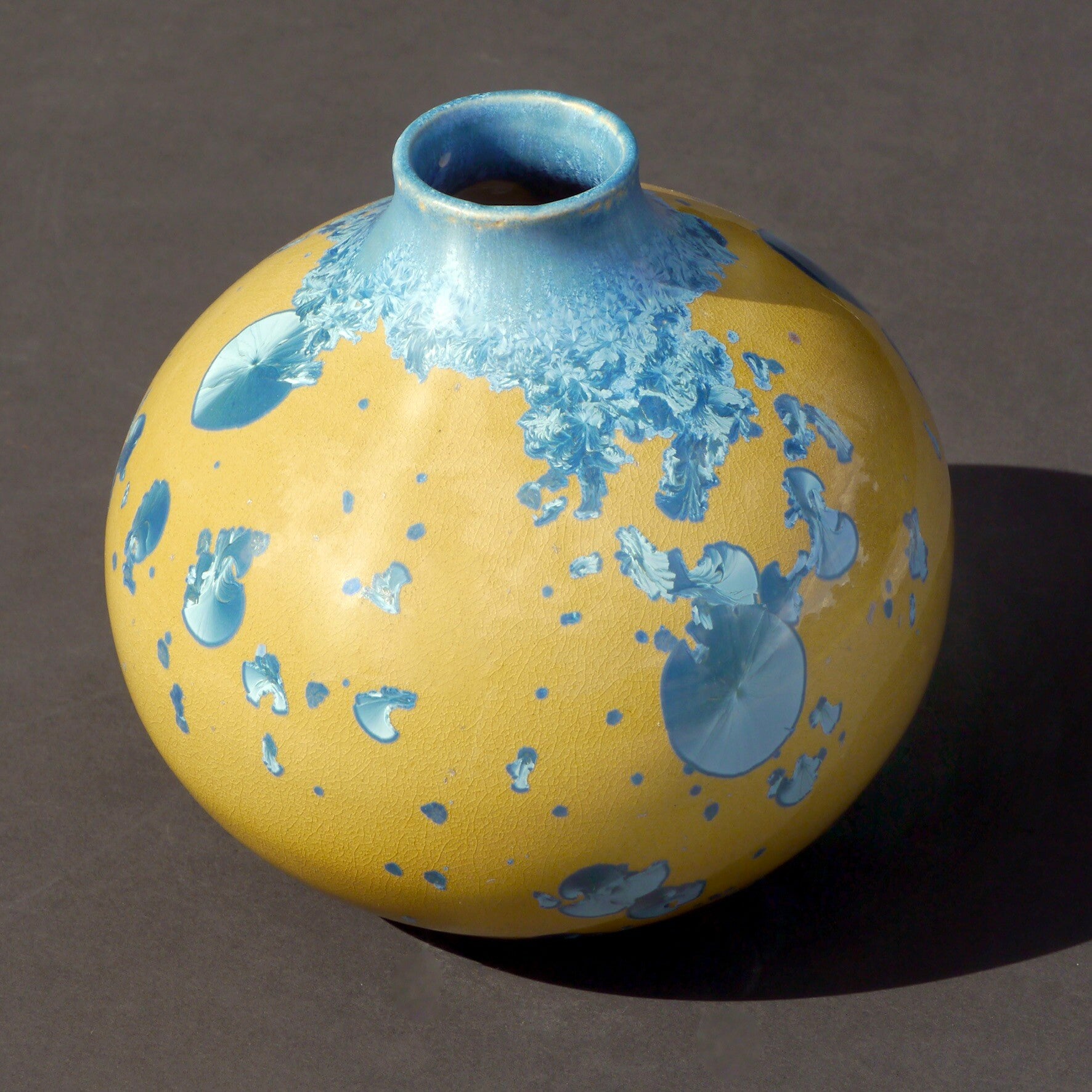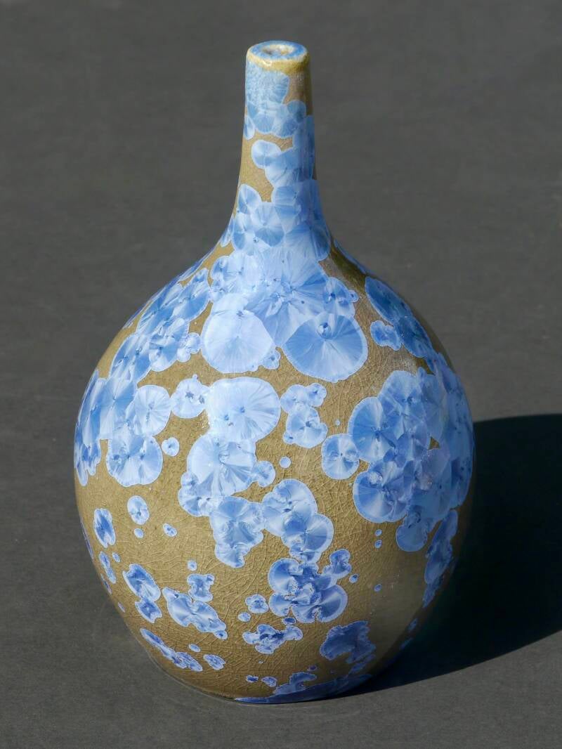 Kristalglazuren zijn een verhaal apart binnen de boeiende wereld van de glazuren. Ze bieden een uitdaging die ik onbevangen ben aangegaan en waarin nog ontzettend veel te ontdekken en te leren valt. In de serie Anthomaren heb ik gebruikt gemaakt van deze speciale glazuurtechniek. Op deze pagina zijn een aantal werken te zien met kristalglazuren. Hierbij heb ik de elektrische oven gebruikt, dus oxidatiebrand.
