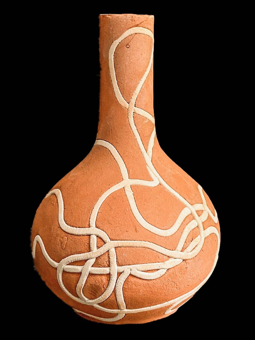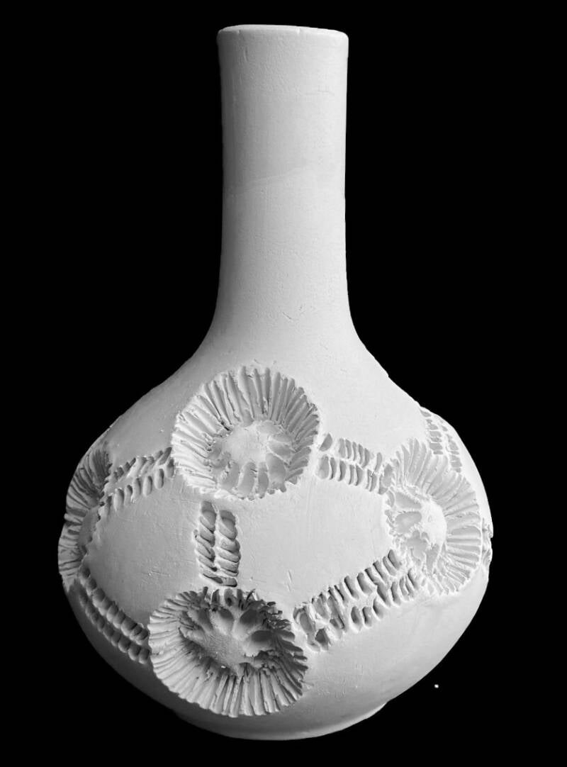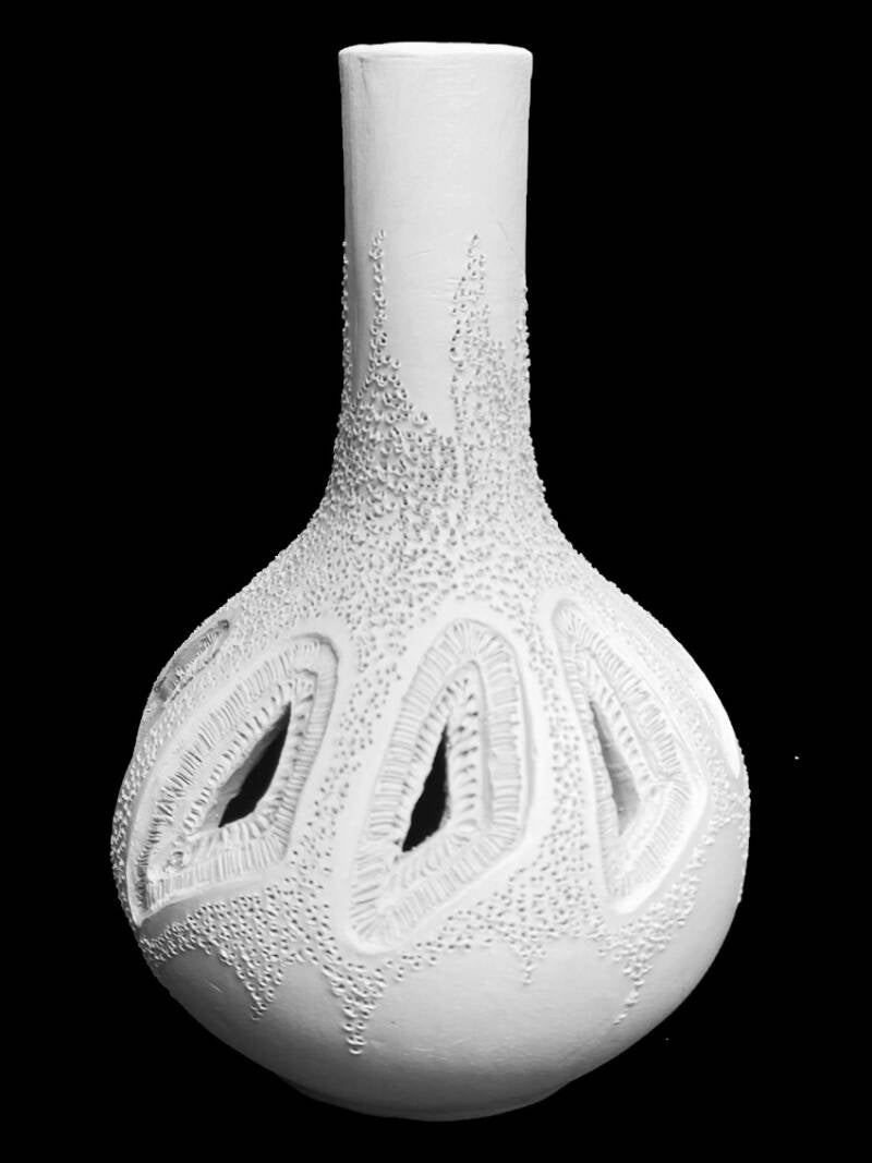 De Engelse keramiste Anna Whitehouse inspireerde met haar werk "100bottles 100days" veel andere keramisten en ook mij om een serie van 100 varianten te maken van één model vaas. Ik ben deze uitdaging met veel plezier aangegaan. Het is een soort dagboek, bestaande uit (uiteindelijk) 100 vaasjes, elk met een eigen titel.